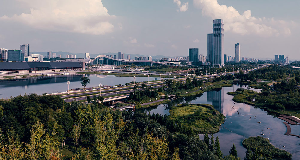2018 年春节前夕,习近平总书记来川视察期间,亲临天府新区调研指导,作出“天府新区是‘一带一路’建设和长江经济带发展的重要节点,一定要规划好建设好,特别是要突出公园城市特点,把生态价值考虑进去,努力打造新的增长极,建设内陆开放经济高地”的重要指示,为新区擘画出公园城市建设高质量发展的宏伟蓝图。