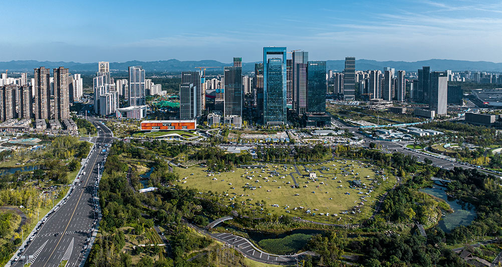 天府新区坚持规划先行、生态优先,公园城市总体呈现。锚定70.1%生态空间,依托山水林田湖的自然生态肌理,发展形成“一山、两楔、三廊、五河、多渠”的生态格局,构建起“大开大阖、显山露水、高低错落、疏密有致”的城市形态,开展全国公园城市标准化综合试点,公园城市建设经验多次入选中国改革案例。